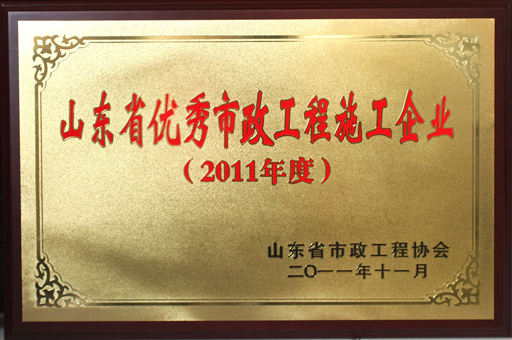 被山東省市政工程協(xié)會評為“2011年度山東省優(yōu)秀市政工程施工企業(yè)”