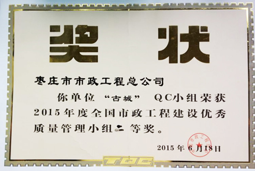 “古城”QC小組榮獲2015年度全國市政工程建設(shè)優(yōu)秀質(zhì)量管理小組二等獎