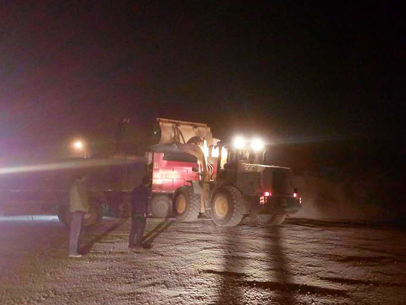 場內(nèi)忙而不亂,場外各司其職。根據(jù)市文體中心項目進(jìn)度安排,有些水穩(wěn)及瀝青鋪設(shè)工序要安排在夜間或凌晨實施。為了保證工序順利實施,機(jī)械公司根據(jù)項目進(jìn)度安排提前組織生產(chǎn)路面材料,有時一干就是連軸轉(zhuǎn)的幾天幾夜,保證路面材料24小時隨時足量供應(yīng)到施工現(xiàn)場;為了保證工程質(zhì)量標(biāo)準(zhǔn)嚴(yán)格符合要求,實驗室根據(jù)施工內(nèi)容分派人員進(jìn)入路面材料生產(chǎn)一線和材料鋪裝一線,隨時按要求對材料的生產(chǎn)、運(yùn)輸、鋪裝、壓實等各個環(huán)節(jié)進(jìn)行質(zhì)量跟蹤檢測。